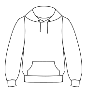 - Drop shoulder style. Double thickness hood with drawcord. Front pouch pocket. Cotton/Lycra® ribbed cuffs and hem. Twin needle stitching. Cut out label.