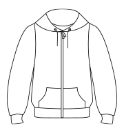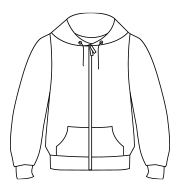 - Drop shoulder style. Double fabric hood with flat drawcord. Taped neck. Narrow full length covered zip. Front pouch pockets. Cotton/Lycra® ribbed cuffs and hem. Twin needle stitching. Cut out label.