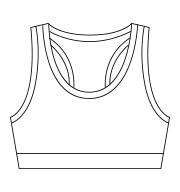 - Medium support sports bra. Round neckline. Cross over elastic adjustable back strap detail. Elastic band with bra clasp closure. Permanent cup insert. Tear out label.
